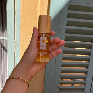 After washing off in the shower I will apply Garden Nectar Serum to my skin and do a face massage and then apply Healing Propolis Balm to my lip or any cystic acne I have as a spot treatment.